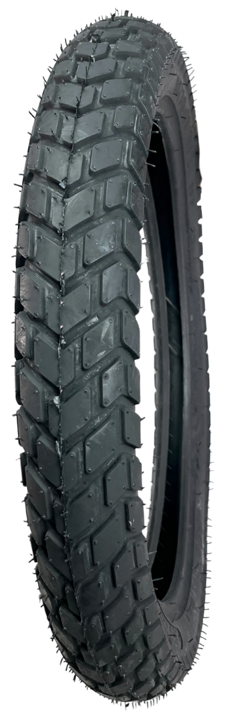 Su diseño en “V” con canal central reforzado garantiza tracción firme en asfalto y estabilidad confiable fuera de camino.