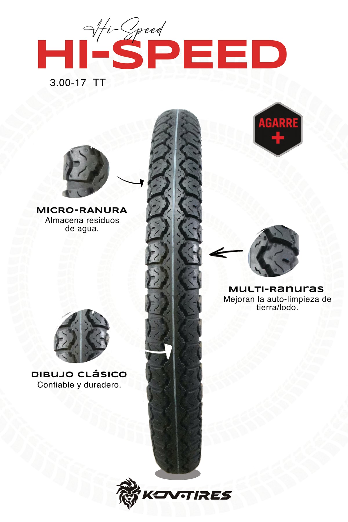 Gracias a su estructura reforzada y carcasa flexible, ofrece una conducción sin saltos ni vibraciones, ideal para quienes buscan comodidad diaria sin perder rendimiento. La KOV Hi-Speed combina confort, durabilidad y seguridad con el sello de calidad que distingue a KOV Tires.