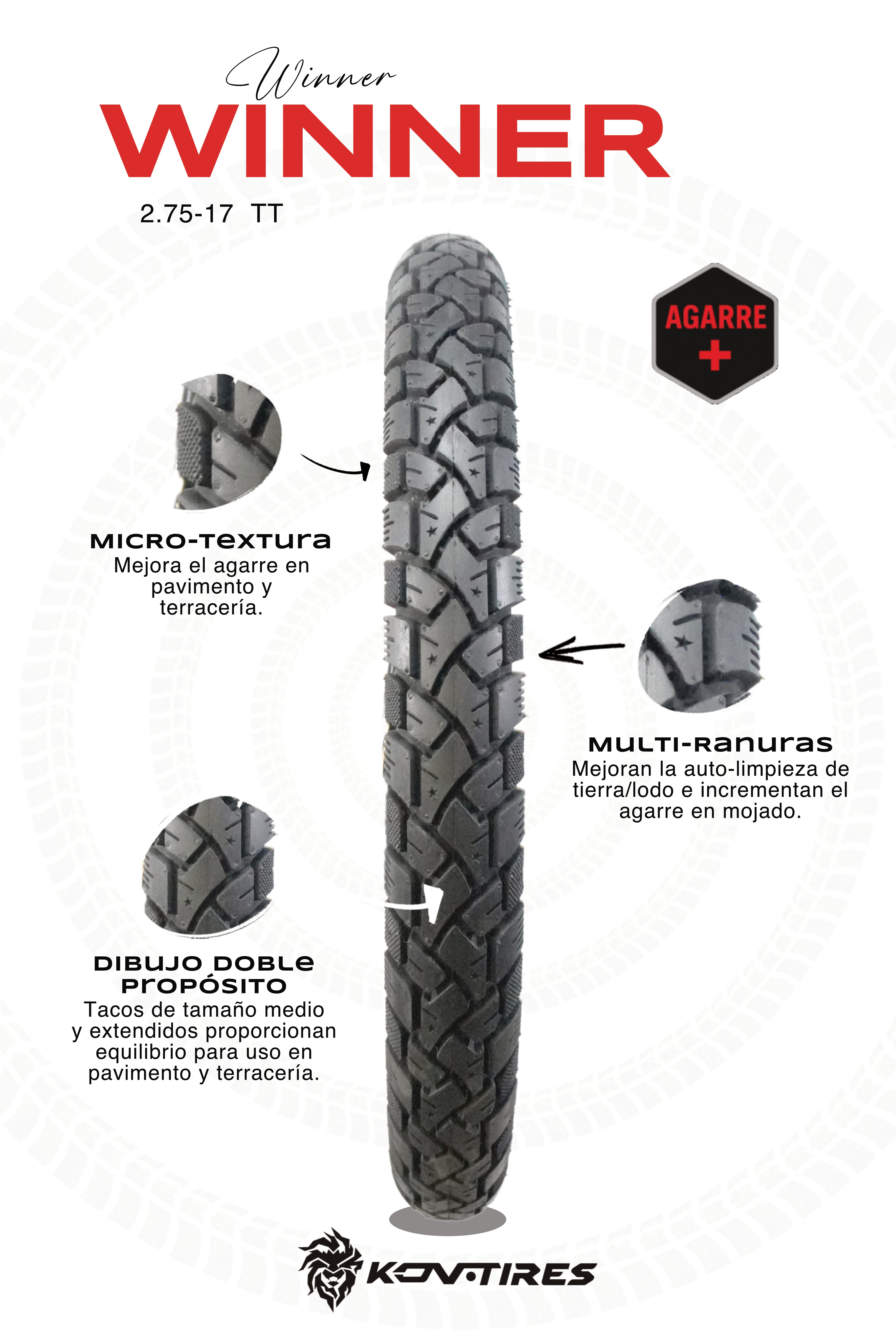 La KOV Winner es la llanta ideal para quienes disfrutan tanto del asfalto como de la aventura fuera del camino.