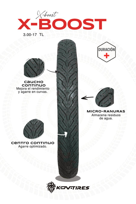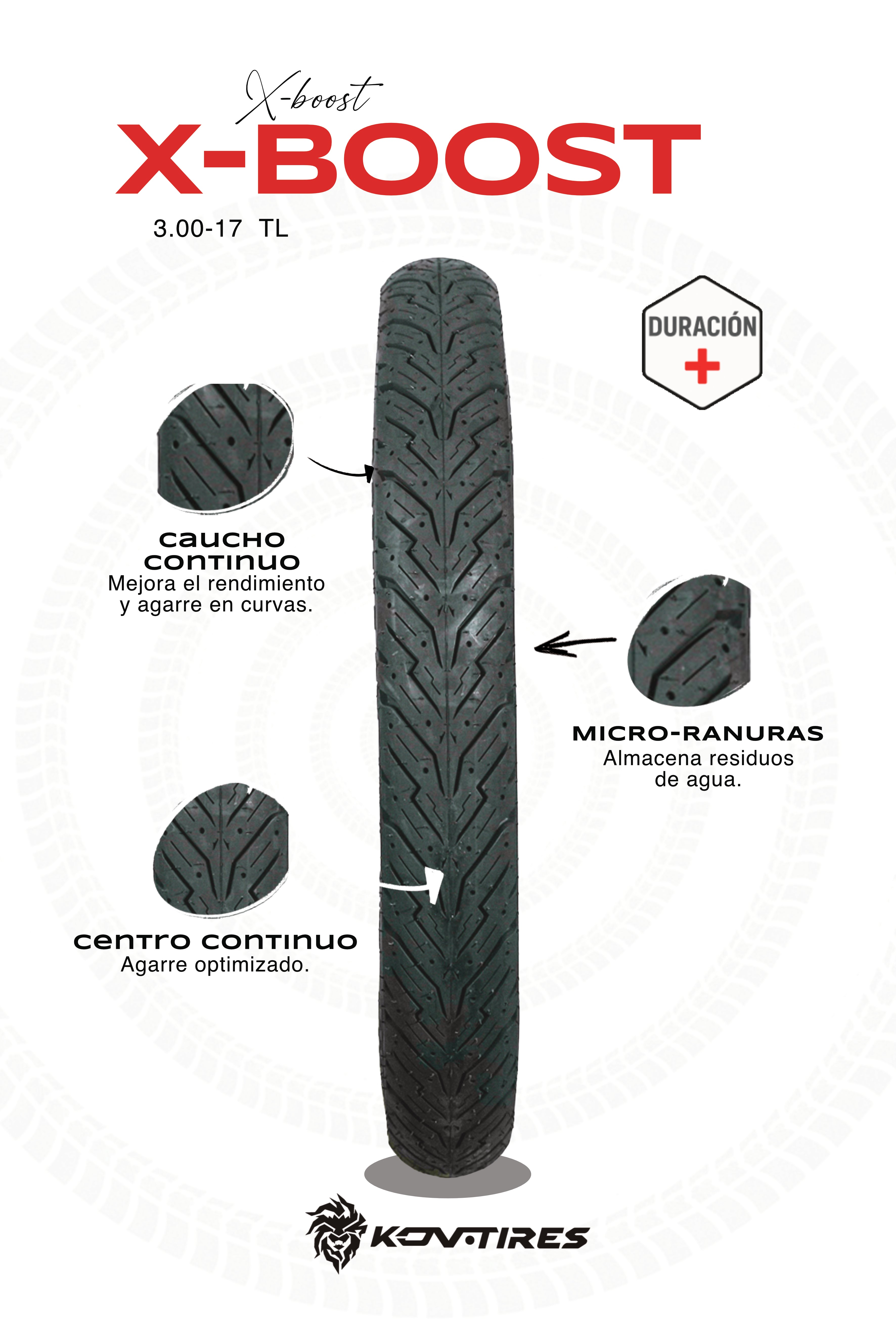 Su patrón de múltiples micro ranuras almacena y expulsa el agua, mejorando la estabilidad bajo lluvia ligera, mientras sus canales secundarios estrechos permiten una mayor cantidad de caucho continuo, ofreciendo un agarre sobresaliente en seco. Gracias a su construcción disminuye vibraciones y saltos mejorando tu experiencia de conducción.